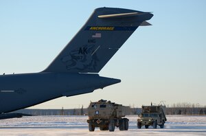 U.S. Army soldiers from the 3rd Battalion, 27th Field Artillery Regiment, 18th Field Artillery Brigade, based in Fort Bragg, North Carolina, conducted High Mobility Artillery Rocket System (HIMARS) infiltration raid training on Fort Greely, Alaska, during RED FLAG-Alaska, Oct. 15, 2020.The HIMARS is